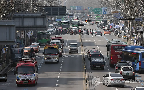 | △ '민방위의 날' 소방차 길 터주기 훈련 (서울=연합뉴스) 이지은 기자 = 제397차 민방위의 날을 맞아 16일 오후 서울 영등포구 일대에서 영등포소방서 대원들이 '소방차 길 터주기 훈련'을 하고 있다. 이날 국민안전처는 이 훈련을 교통량이 많고 혼잡한 주요 도로나 재래시장 등 전국 주요 정체구간 263곳에서 일제히 실시했다. |