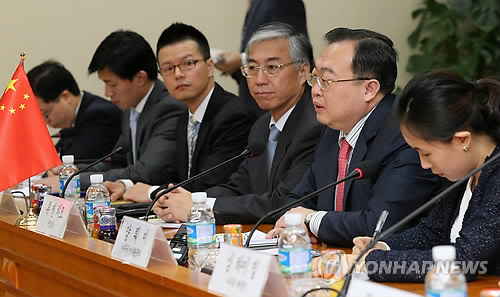 이날 면담에서 류 부장조리는 "중한 양국은 동북아 지역의 중요한 국가로서, 동북아의 평화안정 유지에 공동의 이익을 갖고 있다"면서 "중국은 한국과 함께 이 지역의 평화 안정을 수호하기 위해 노력할 것"이라고 말했다.
