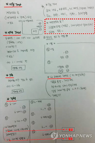 | △ '일자리·고수익' 미끼…구직자 두번 울린 보이스피싱 (서울=연합뉴스) 취업난 속에서 애타게 일자리를 구하려는 구직자에게 접근한 전화금융 사기행각(보이스피싱) 조직이 잇따라 경찰에 적발됐다. 보이스피싱 조직은 일자리를 찾아온 구직자를 통해 대포통장을 모으거나 고수익을 미끼로 아예 인출책으로 고용한 것으로 나타났다. 사진은 보이스피싱 조직이 인출책으로 고용한 구직자들을 관리하려 만든 행동수칙 지시서. 2015.3.18 << 서울 양천경찰서 제공 >> 2vs2@yna.co.kr |