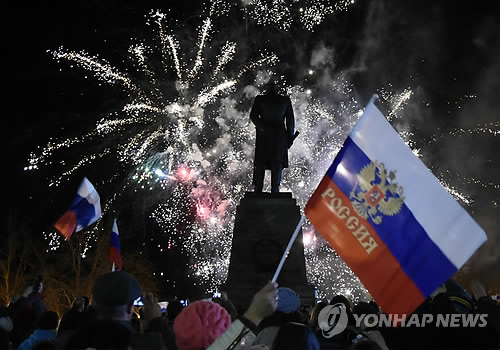 이에 앞서 극동 도시 블라디보스토크에서는 1만여명의 주민이 집회를 열고 크림 병합을 기념했다.