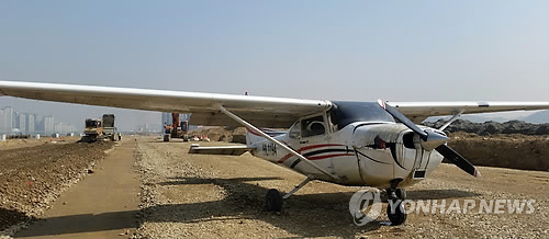 (시흥=연합뉴스) 최해민 기자 = 김포공항에서 이륙한 경비행기가 시흥 배곧신도시 인근에 비상착륙했다.