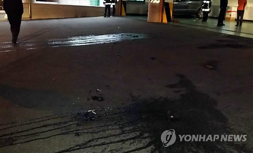 △ 소방서 앞 분신현장 (수원=연합뉴스) 19일 오전 6시 8분께 경기도 수원시 권선구 권선동 수원소방서 남부119센터 앞에서 이모(27)씨가 분신했다. 경찰과 소방당국에 따르면 이씨는 휘발유를 몸에 뿌리고 불을 붙였다가 119센터 당직자에게 발견돼 인근 병원으로 옮겨져 치료를 받고 있다. 이씨는 전신에 2도 화상을 입은 것으로 알려졌다. 사진은 분신한 현장. 2015.3.19 <<수원소방서>> you@yna.co.kr