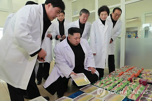 △ 北 김정은, 체육인식품공장 시찰 (평양 조선중앙통신=연합뉴스) 김정은 북한 국방위원회 제1위원장이 체육인을 위한 식품공장인 평양 금컵체육인종합식료공장을 현지 지도했다고 조선중앙통신이 19일 보도했다. 2015.1.19 photo@yna.co.kr