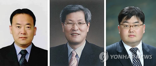 | △ 노숙자 살인 누명 벗긴 3인의 국선변호인 (서울=연합뉴스) 한지훈 기자 = 10년 전 순천시 살인사건 피의자로 지목된 김모 씨의 대법원 무죄확정 판결을 도운 김준채(왼쪽부터), 김용채, 박흥수 변호사. 2015.3.21 hanjh@yna.co.kr |