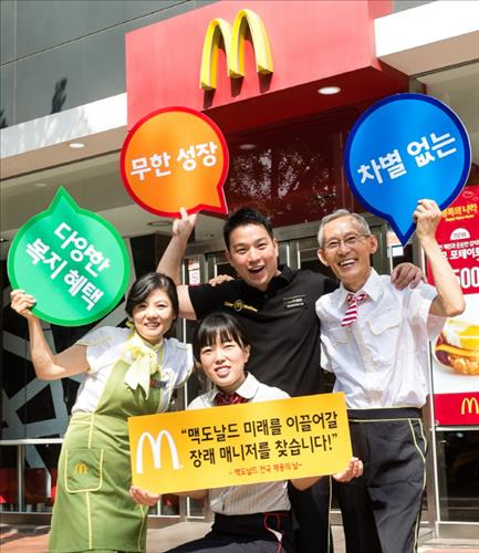 맥도날드는 이날 보도자료를 내고 "1988년 한국에 진출한 이래 투명한 경영과 서비스 철학으로 현재 400여개 매장에서 1만8천여명의 인력을 고용하고 있다"며 "크루 중심의 경영 철학에 따라 국내 정규직 매니저 75% 이상, 본사 직원 50% 이상이 매장 출신"이라고 설명했다.