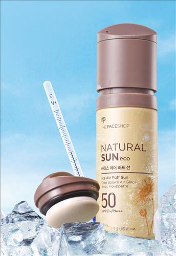 (서울=연합뉴스) 김희선 기자 = 화장품 브랜드 더페이스샵은 피부를 식혀주는 자외선 차단제 '내추럴 선 에코 아이스 에어퍼프 선'을 출시했다고 25일 밝혔다.