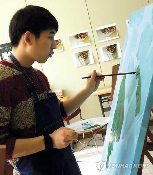 | △ 발달장애 청년, 군산서 첫 개인 전시회 열어 (군산=연합뉴스) 김동철 기자 = 자폐성 발달장애 2급인 이남기(20)씨가 오는 4월 3일부터 일주일간 군산 예술의전당 제2전시실에서 그림 전시회를 연다. 이씨는 수채화와 아크릴화 32점을 선보인다. 2015.3.25 sollenso@yna.co.kr |