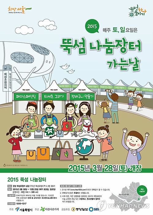 | △ 아름다운가게, 뚝섬유원지서 주말마다 나눔장터 개장 (서울=연합뉴스) 이슬기 기자 = 아름다운가게는 오는 28일 한강 뚝섬유원지 광장에서 국내 최대 벼룩시장인 나눔장터를 개장한다고 25일 밝혔다. 2015.3.25 << 아름다운가게 제공 >> wise@yna.co.kr |