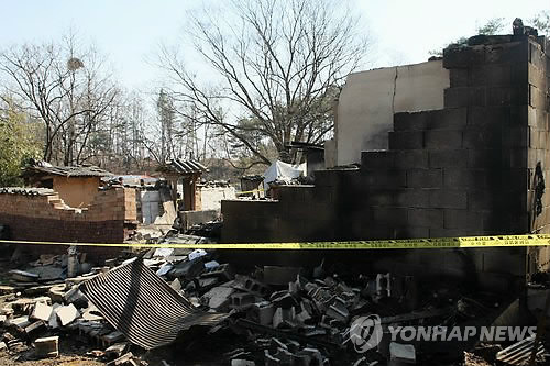 | △ 훈민정음 해례본도 탔을까 (상주=연합뉴스) 손대성 기자 = 26일 경북 상주시 낙동면의 한 주택에서 불이 난 이후 경찰관이 감식 작업을 벌이고 있다. 이 주택은 훈민정음 해례본 상주본을 소유한 것으로 알려진 소유자인 배모씨의 집이다. 2015.3.26 sds123@yna.co.kr |