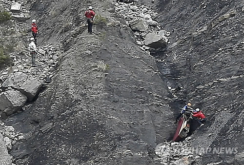 | △ 프랑스 남부 알프스에 떨어진 저먼윙스 여객기의 잔해를 수색 중인 구조대원들 (AP=연합뉴스) |