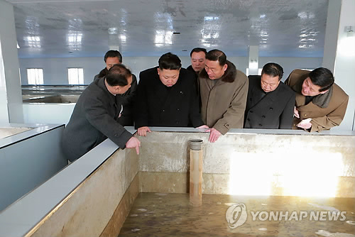 △ 북한 김정은 위원장, 평양 메기공장 현지지도 (평양 조선중앙통신=연합뉴스) 북한 김정은 국방위원회 제1위원장이 평양메기공장을 현지지도 했다고 조선중앙통신이 23일 보도했다. 통신은 이 사진을 보도하며 촬영일자를 최근이라고 밝혔다. 2014.12.23 photo@yna.co.kr
