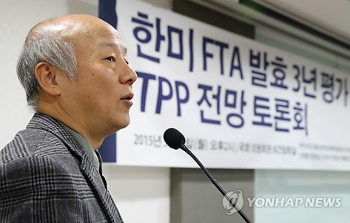 | △ 박석운 대표 (서울=연합뉴스) 서울중앙지검 공공형사수사부(이문한 부장검사)는 농성 활동을 제지하는 경찰관에게 욕설을 한 혐의(모욕)로 박석운(60) 한국진보연대 공동대표를 불구속 기소했다고 30일 밝혔다. 사진은 박 대표가 9일 서울 여의도 국회 의원회관에서 TPP-FTA대응 범국민대책위원회 등 주최로 열린 '한미 FTA 발효 3년 평가 및 TPP 전망 토론회'에서 인사말을 하는 모습. <<연합뉴스 DB>> jieunlee@yna.co.kr |