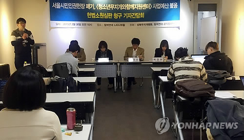 (서울=연합뉴스) 설승은 기자 = 작년 서울시가 성소수자 차별 금지 조항이 포함된 인권헌장을 폐기하고 성북구가 성소수자 관련 주민참여 사업 예산을 불용시킨 것과 관련해 시민단체가 헌법소원을 냈다.