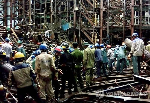 이곳에서는 지난 25일 오후 7시50분께 항만부두 방파제의 케이슨(기초 철근콘크리트 구조물) 제작을 위한 거푸집이 무너지면서 13명이 숨지고 29명이 다쳤다. 사상자는 모두 베트남인이다.