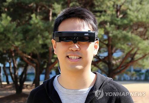 | △ KAIST 전기 및 전자공학과 유회준 교수 연구팀이 개발한 사용자의 시선을 인식해 증강현실을 구현할 수 있는 스마트안경 '아이클릭'(KAIST 제공) |