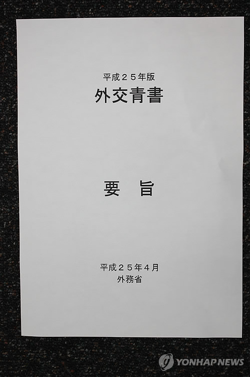 | △ '독도영유권 주장' 일본 2013년 외교청서 표지 (도쿄=연합뉴스.자료사진) |