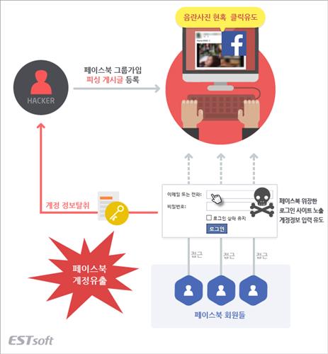 피싱을 위해 해커는 회원 수가 많은 페이스북 비공개 그룹에 가입한 뒤 '음란 동영상', '연예인 스캔들 동영상' 등 사용자의 관심을 끌 수 있는 자극적인 제목의 글을 게재한다.
