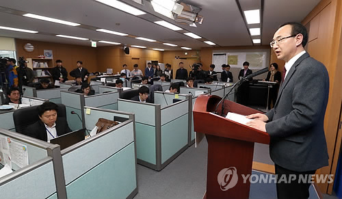 △ 박경철 세월호 배·보상 지원단장 브리핑 (세종=연합뉴스) 배재만 기자 = 박경철 세월호 배상 및 보상 지원단장이 1일 오전 정부세종청사 해수부 기자실에서 전날 열린 세월호 배·보상 심의위원회 1차회의 결과 브리핑을 통해 세월호 사고 피해자에 대한 배·보상 지급기준 등을 의결하고 4월부터 설명회 개최와 현장 접수 등 배·보상 절차에 착수한다고 밝히고 있다.