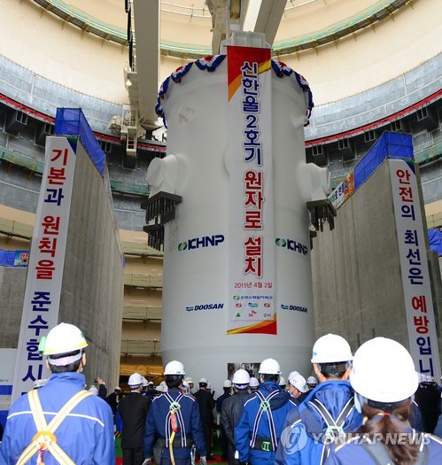 (서울=연합뉴스) 이웅 기자 = 한국수력원자력은 2일 경북 울진에 건설 중인 신한울 원자력발전소 2호기에 원자로 설치를 완료했다고 밝혔다.