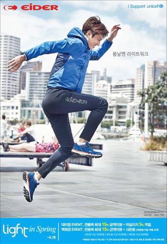 (서울=연합뉴스) 전준상 기자 = 프랑스 아웃도어 브랜드 아이더(www.eider.co.kr)는 19일까지 아이더 전국 대리점과 백화점에서 구매하는 고객을 대상으로 구입금액의 최대 15%를 지원하는 '라이트 인 스프링' 이벤트를 진행한다고 2일 밝혔다.