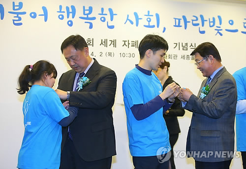 아울러 이날 오후 7시에는 서울N타워, 동호대교, 인천대교 등 전국 명소에 파란 불빛을 밝히는 '파란등 켜기'(Light it up blue) 캠페인이 진행됐다.
