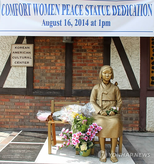 | △ 미시간주에 해외 2번째 일본군 위안부 소녀상 제막 (사우스필드<미국 미시간주>=연합뉴스) 김현 통신원 = 16일(현지시간) 미국 디트로이트 북서 교외도시 사우스필드의 미시간 한인문화회관에서 평화의 소녀상 제막식 행사가 거행됐다. 캘리포니아주 글렌데일 시에 이어 미국 내 2번째다. 2014.8.17 << 국제뉴스 기사참조 >> chicagorho@yna.co.kr |