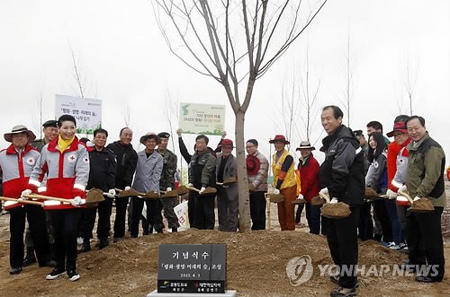 이들은 식목일을 국가기념일로 지정한 1946년을 기념해 자작나무, 상수리나무, 박태기나무, 느티나무, 산벚나무 등의 묘목 1천946 그루를 심었다.