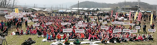 대부분 백발이 성성한 노인들로, 일부 주민은 미군 사격장 소음으로 인한 가축 유산에 항의하는 표시로 송아지 2마리를 데려오기도 했다.