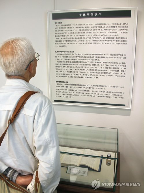 (도쿄=연합뉴스) 조준형 특파원 = 일본 규슈(九州)대 의대에 미군 포로를 상대로 잔악한 생체실험을 했던 의대 선배들의 만행을 반성하는 전시물이 설치됐다.