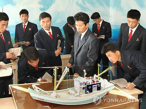 △ 실습하는 북한 남포수산대학 학생들. (평양 조선중앙통신=연합뉴스) 2014.11.21 photo@yna.co.kr