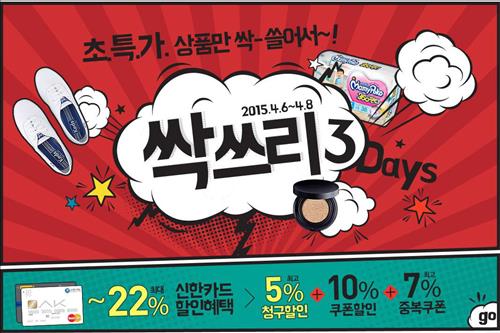 날짜별 주요 행사 상품은 ▲ 6일 에스쁘아 쿠션세트 2만8천500원(59% 할인) ▲ 7일 루이까또즈 파시미나 스카프 1만9천900원(49%) ▲ 8일 마미포코 팬티기저귀 4팩 3만3천900원(43%) 등이다.