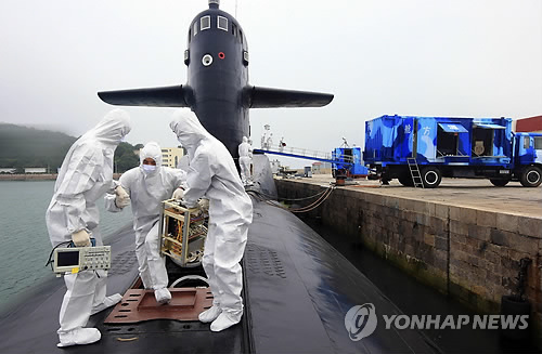 △ 핵잠수함 위의 中 해군 병사 (AP=연합뉴스) 중국 해군 병사들이 지난 7월 18일(현지시간) 산둥성 칭다오 잠수함 기지에서 훈련 중 핵잠수함 밖으로 나오고 있다. 중 해군은 27일 이 사진을 포함한 핵잠수함 부대의 훈련 모습 등을 공개했으며 신화통신을 비롯한 인민일보, CCTV, 해방군보, 광명일보 등 중국의 주요 관영매체들은 28일 이를 대대적으로 보도했다. 중국이 핵잠수함 부대를 언론에 대대적으로 공개한 것은 댜오위다오(일본명 센카쿠 열도) 영유권 분쟁이 심화하고 일본이 집단적 자위권을 추진하는 등 군사 영향력 강화를 꾀하자 이에 대한 경고 메시지를 전하려는 것으로 보인다. **중국내 사용 금지 marshal@yna.co.kr In this photo taken on July 18, 2013 and released by the Chinese Navy on Sunday, Oct 27, 2013, Chinese sailors carrying equipments climb out of a nuclear submarine during a training exercise at the Qingdao submarine base in east China's Shandong province. In a sign of growing confidence, China's navy gave Chinese media on Sunday, Oct. 27, 2013 unprecedented publicity on its first nuclear submarine fleet, one of its most secretive military programs. China is devoting increasing resources to its naval forces to safeguard its maritime interests and assert its territorial claims. (AP Photo) CHINA OUT