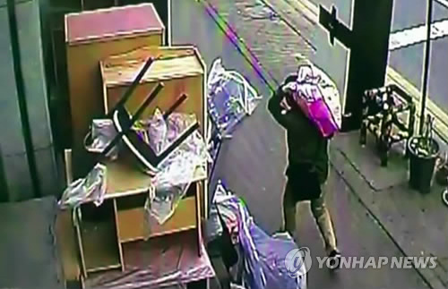 | △ CCTV 화면에 찍힌 토막살인 피의자 김하일씨 모습 (시흥=연합뉴스) 경기 시흥경찰서 수사본부는 8일 아내를 살해한 뒤 시신을 훼손해 시화방조제 인근에 유기한 혐의(살인 및 사체유기 등)로 김하일(47·중국 국적)씨를 긴급체포해 조사하고 있다. 사진은 김씨가 이날 오전 아내 시신 일부를 유기하러 조카 집으로 향하는 모습이 찍힌 CCTV 화면을 캡처한 것. (경기경찰 제공) |