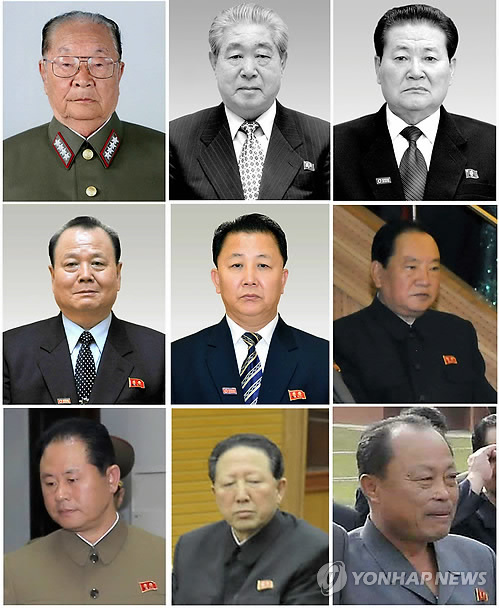 △ 두 번째 줄 왼쪽이 박도춘 최고인민회의 대의원이다. 사진은 지난해 7월 연합뉴스가 북한 군수공업 분야의 1세대인 전병호 전 노동당 군수담당 비서의 사망을 계기로 이 분야의 세대교체를 정리한 것이다. 사진 맨 위의 줄은 군수분야의 일선에서 물러난 인물들로 왼쪽부터 전병호, 주규창 전 노동당 기계공업부(과거 군수공업부) 부장, 백세봉 전 2경제(군수경제)위원회 위원장. 두 번째와 세 번째 줄은 최근 군수공업 분야의 떠오르는 실세들로 두 번째 줄 왼쪽부터 박도춘 당 군수담당 비서, 조춘룡 2경제위원장, 강관일 당 기계공업부 부부장, 세 번째 줄 왼쪽부터 홍영칠·홍승무 당 기계공업부 부부장, 최춘식 제2자연과학원장. <<연합뉴스DB>>