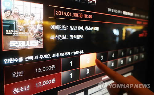 | △ 서울의 한 멀티플렉스 극장에서 관람객이 표를 구매하고 있다.(연합뉴스 자료사진) |