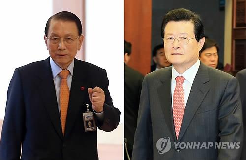 | △ 검찰 "성완종 금품메모 발견…김기춘·허태열 포함" (서울=연합뉴스) 자원외교 비리 의혹으로 검찰 수사를 받다가 숨진 채 발견된 성완종 전 경남기업 회장이 정치권에 금품을 뿌린 정황을 적은 메모를 검찰이 확보했다. 10일 서울중앙지검 특수1부에 따르면 전날 성 전 회장의 시신을 검시하는 과정에서 김기춘·허태열 전 청와대 비서실장 등의 이름과 특정 액수가 적힌 쪽지가 발견됐다. 사진은 청와대 비서실장 재임시절의 김기춘(좌), 허태열 비서실장. (연합뉴스DB) |