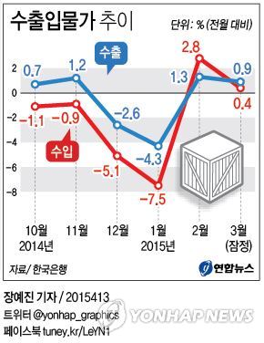 이로써 그동안 지속적인 내림세를 보이던 수출입 물가는 지난 1월 저점을 찍은 뒤 두 달째 동반 상승했다.