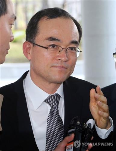 △ '성완종리스트' 특별수사팀장인 문무일 대전지검장이 13일 서초구 서울고등검찰청으로 출근하고 있다. 문 검사장은 "이번 사건에 대해 결연한 의지를 갖고 진상을 철저히 규명하도록 진력할 것"이라고 밝혔다.