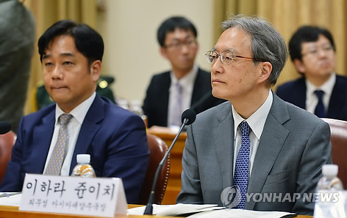 △ 발언듣는 일본 측 이하라 수석대표 (서울=연합뉴스) 황광모 기자 = 한·일 양국이 5년만에 안보협의회를 개최했다. 14일 오후 서울 도렴동 외교부 청사에서 열린 제10차 한·일 안보정책협의회에서 일본측 수석대표인 이하라 준이치 일본 외무성 아시아대양주 국장(오른쪽)이 한국 측 수석대표인 이상덕 외교부 동북아 국장의 모두 발언을 듣고 있다.