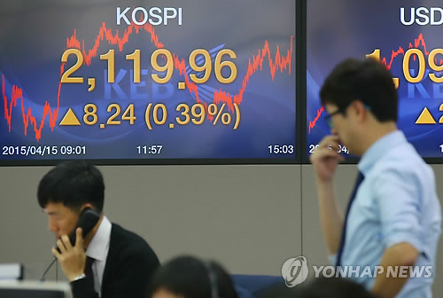(서울=연합뉴스) 김수진 기자 = 코스피가 15일 외국인과 개인들의 매수세에 힘입어 지수 2,120선에 바짝 다가섰다.