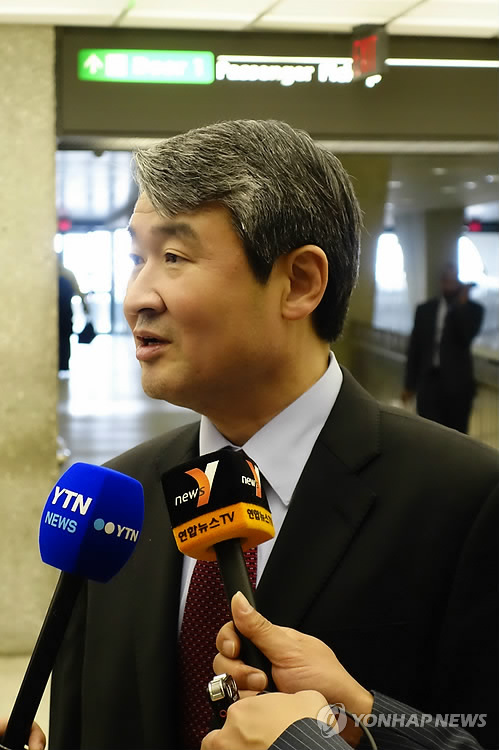 | △ 워싱턴DC 방문한 조태용 외교부 1차관 (워싱턴=연합뉴스) 김세진 특파원 = 조태용 외교부 1차관이 15일(현지시간) 한·미·일 3국 외교차관 협의회 참석을 위해 워싱턴DC에 도착한 직후 특파원들에게 "일본의 역사 문제에 대해 분명하고 단호하게 얘기하겠다"고 밝혔다. 2015.4.16. smile@yna.co.kr |