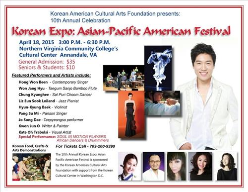 한미문화예술재단(이사장 이태미)은 오는 18일(이하 현지시간) 버지니아주 애난데일 노던 커뮤니티 대학의 문화센터에서 '제10회 아태문화축전'을 개최한다. 오후 3시부터 6시 30분까지 공연과 워크숍으로 나눠 펼쳐진다.