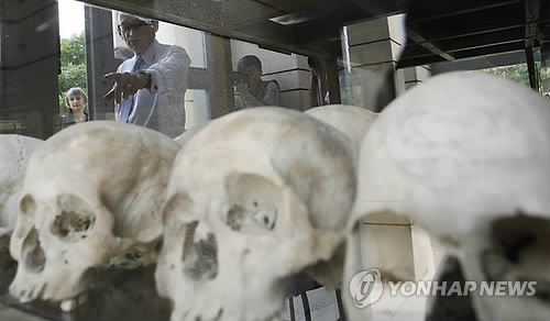 △ 캄보디아 프놈펜의 초응엑 대학살 센터에 안치된 희생자들의 유골. (EPA=연합뉴스 DB사진)