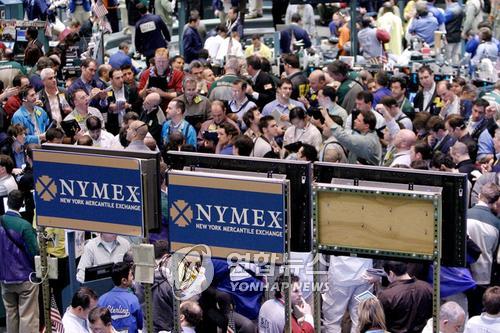| △ 미국 뉴욕상업거래소(NYMEX) 내부 전경.(EPA=연합뉴스 자료사진) |