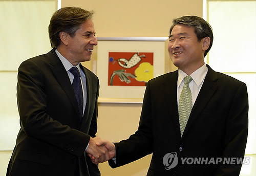 | △ 블링큰 미 국무부 부장관과 조태용 외교부 1차관 (EPA=연합뉴스 자료사진) |