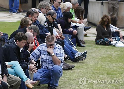 | △ 19일(현지시간) 미국 오클라호마시티 폭탄 테러 참사 20주기 추도식에 참석한 수백명의 시민이 희생자를 기리며 168초간 묵념하고 있다. |