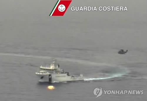 | △ 19일(현지시간) 시칠리아 해협에서 구조 작업을 벌이고 있는 이탈리아 해안 경비대 (EPA=연합뉴스) |