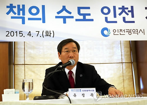 | △ 인사말 하는 유정복 인천 시장 (서울=연합뉴스) 최재구 기자 = 유정복 인천시장이 7일 서울 프레스센터에서 열린 '인천시, 2015 세계 책의 수도 개막행사 및 추진계획 설명회'에서 인사말을 하고 있다. 2015.4.7 jjaeck9@yna.co.kr |