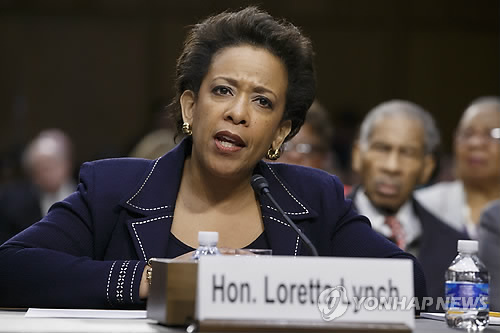 | △ 미국의 로레타 린치(56) 법무장관 지명자가 지난 1월 28일(현지시간) 상원 법사위원회의 인준 청문회에서 의원들의 질문에 답하고 있다. (AP=연합뉴스) |