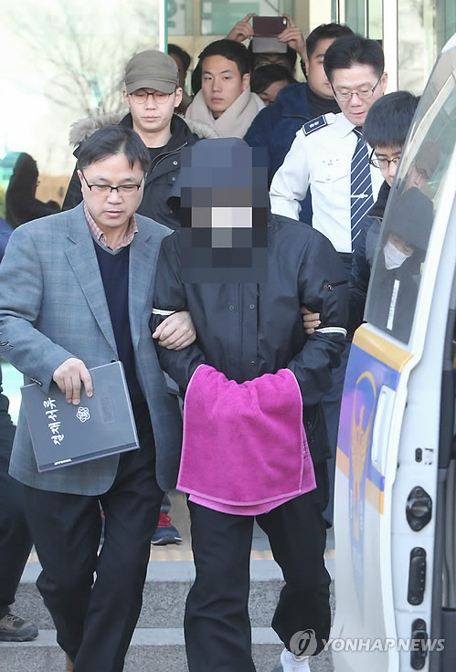 | △ 크림빵 뺑소니 피의자 '유족께 미안합니다' (청주=연합뉴스) 김형우 기자 = '크림빵 뺑소니' 사건 피의자 허모(37)씨가 31일 영장실질심사를 받기 위해 청주흥덕경찰서를 나서고 있다. 허씨는 이날 취재진에 "유족에게 미안하다"고 말했다. 경찰은 허씨에 대해 특정범죄가중처벌법상 도주차량 혐의로 구속영장을 신청했다. 2015.1.31 vodcast@yna.co.kr |
